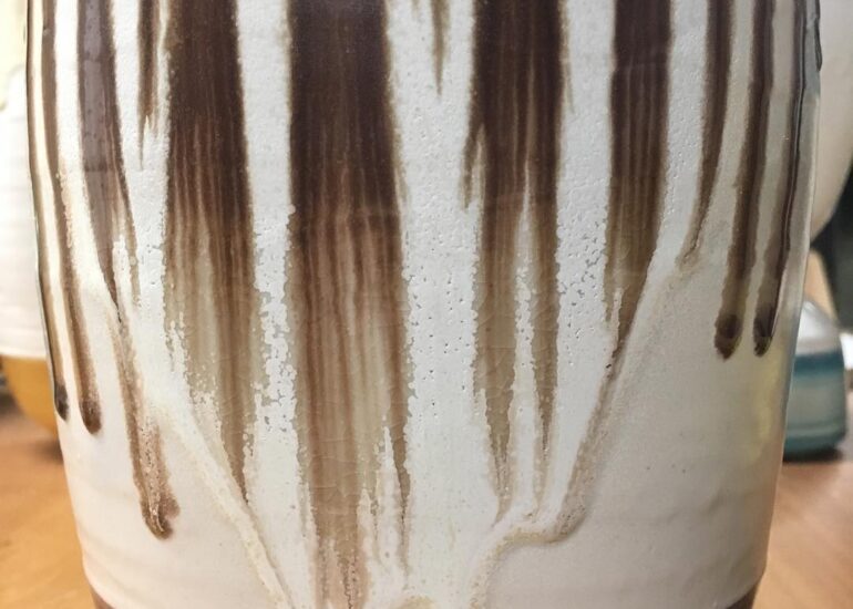 This was a nice surprise out of the kiln. Includes 3 very different overlapping glazes in combination caused a really nice flow or running[...]