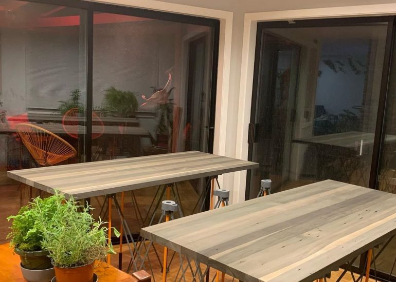 Probably should be glazing but today I stained some reclaimed 2×4 desktops….